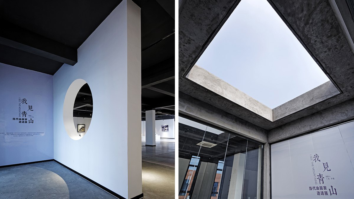 藝術(shù)的生命不為世俗的價值所累,唯有伯樂眼中的凈土,才是其生長蔓延的棲身之所。我見青山,青山有我才為青山,體悟藝術(shù)中含蓄不可捉摸的自我,或是藝術(shù)最初的意義所在。本項目位于藝術(shù)園區(qū)內(nèi),項目將藝術(shù)與公眾生活、文化教育緊密結(jié)合。在設(shè)計中采用園林設(shè)計的敘述方式,做到一步一景,出出成景,在有限的空間中創(chuàng)造別有洞天的生動畫面。整體空間規(guī)劃中,還規(guī)劃設(shè)計了會議區(qū)、觀眾休息區(qū)、餐飲區(qū)等功能區(qū),旨在增加空間附加值,同時提升觀者的觀展體驗。